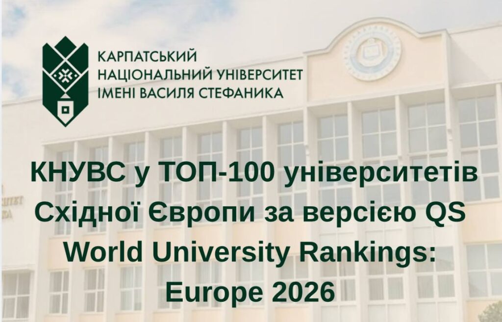 Карпатський національний університет імені Василя Стефаника вперше в історії увійшов до одного з найпрестижніших міжнародних рейтингів – QS World University Rankings: Europe 2026, що є знаковою подією для всієї університетської спільноти. Це досягнення засвідчує високий рівень академічної та наукової спроможності Читати далі