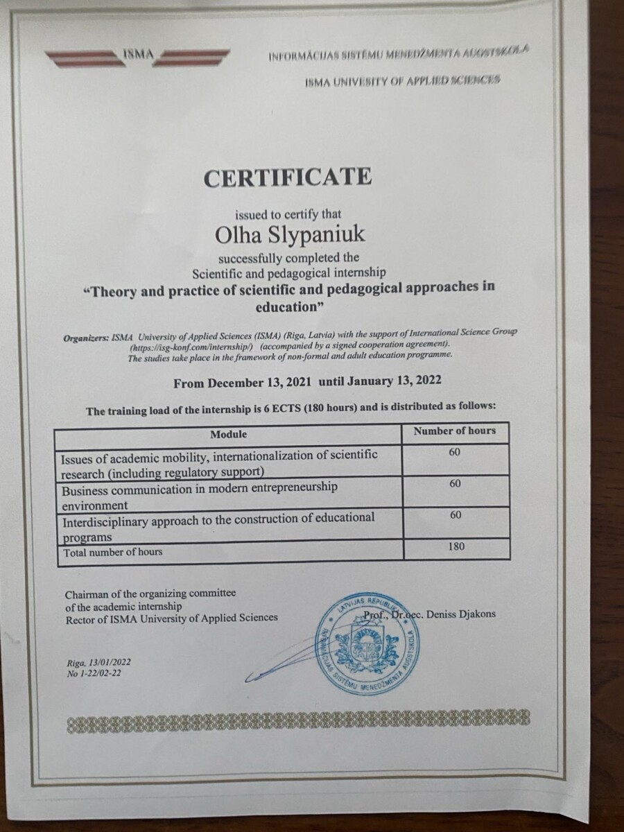 “Теорія та практика науково-педагогічного підходу в освіті” 2022 р. Сертифікат